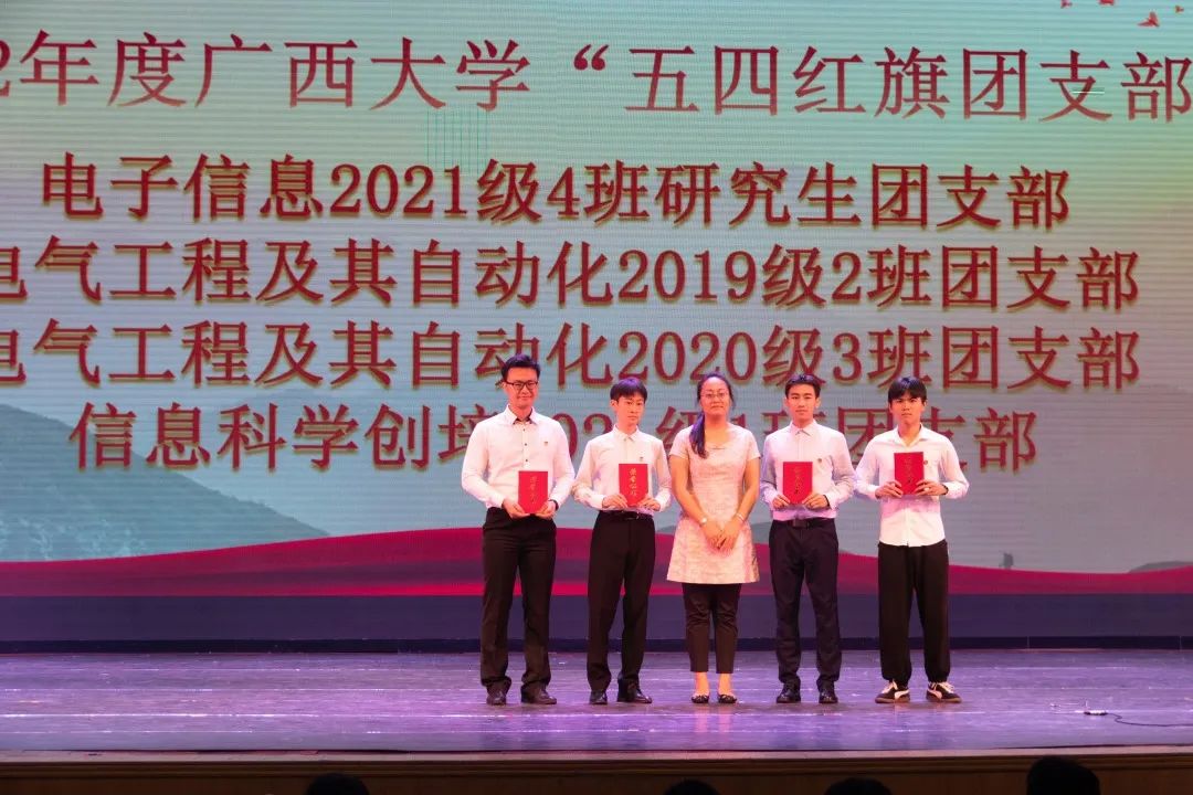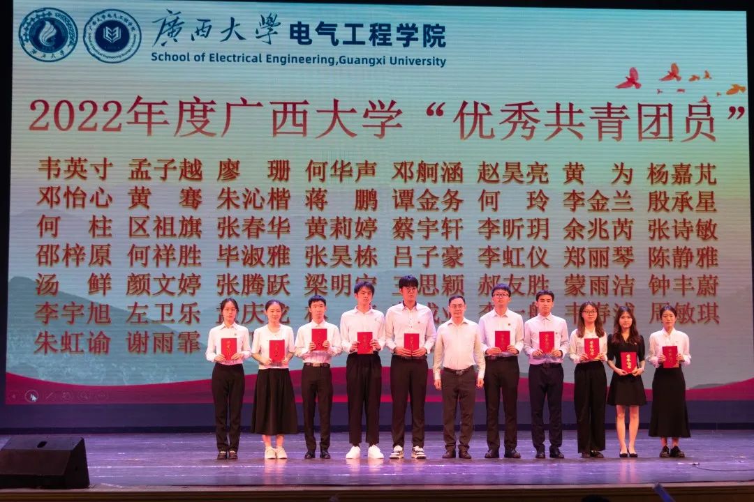 在过去一年里,太阳成集团tyc9728坚持为党育人、为国育才,注重思想引领,积极开展“书香激扬青春”读书活动,赴各地开展党建联建系列活动,用脚步丈量祖国大地;师生们锐意进取,奋发有为,在多项赛事获得喜人成绩,取得累累硕果。晚会也为公司2022年度宝钢特等奖学金、2021-2022学年度国家奖学金、2022—2023学年度自治区人民政府奖学金以及广西优秀共青团员、2022年度9728太阳成集团“向上、向善好青年”“优秀志愿者”“优秀共青团干部”“优秀共青团员”等多项荣誉获得者,2022年度9728太阳成集团“五四红旗团支部”“优秀志愿服务项目”获奖集体特别设置了表彰环节,先进青年们将锐意进取,奋楫笃行,勉励电气青年们见贤思齐,向更高的目标和方向努力。