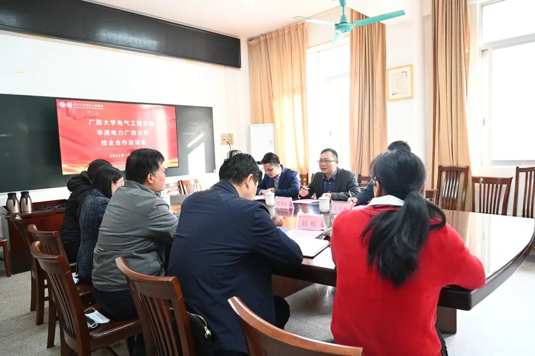 12月12日下午,华润电力广西公司副总经理陈利永、综合管理部部长左孔林以及综合管理部副部长罗圣海到公司开展校企合作交流。公司党委书记梁志坚、党委副书记雷圆媛、副经理刘辉、机械工程学院副教授陈春香、团委副书记蒋冬连参加交流会。