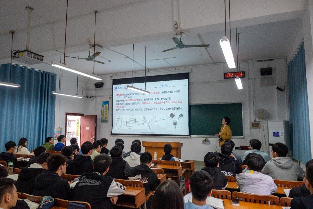 李修华老师结合课程中关于电气控制元件中的晶闸管、绝缘栅双极晶体管在日常生产生活还有电气学科前沿研究领域中的应用,如IGBT在家用电器、电机控制器、电动汽车、太阳能逆变器、风力发电、智能电网、轨道交通等领域中的应用,鼓励同学们课下自行了解探索感兴趣的应用领域,拓宽视野、激发自主学习兴趣。