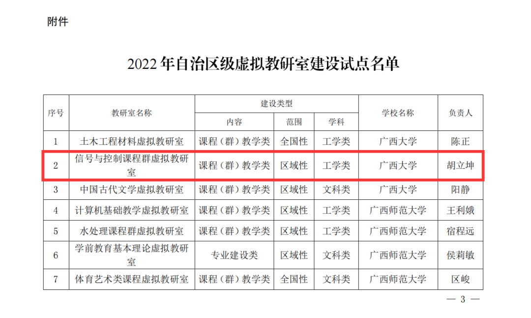 近日,广西壮族自治区教育厅公布了2022年首批自治区级虚拟教研室建设试点名单,经高校申报、专家遴选,公司胡立坤教授牵头的信号与控制课程群虚拟教研室入选。该虚拟教研室参建单位包含了区内所有含自动化类专业和电气类专业学校。