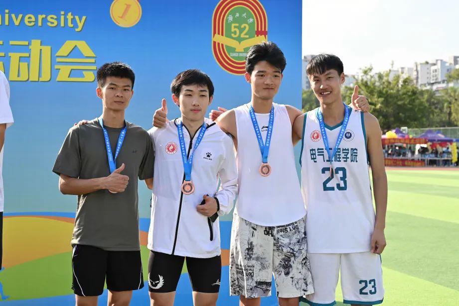 在团体赛,公司运动员在比赛中团结一心,共创佳绩,大家齐心协力,劲往一处使,在男子组4x100米(邓舸涵、李欣宇、乐溢、覃善清)和4x400米(李广勇、黄炜林、贾明瑞、杨帆)分别取得第2名和第3名的喜人成绩,在女子组4x100米(杨琬婷、詹钰婷、李姗姗、潘菁莹)取得第3名的优异成绩。