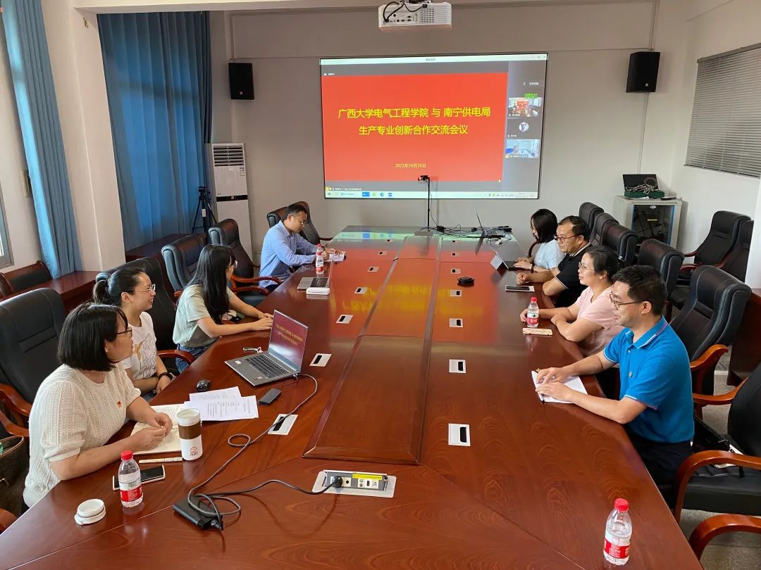 10月26日下午,太阳成集团tyc9728与南宁供电局生产专业创新合作交流会在学院315会议室举行,会议主题是“科研共建助创先”。学院副经理黎静华主持会议,十多名教师通过线上或线下方式参会。