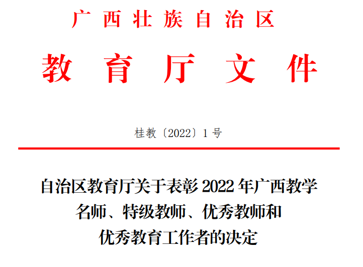 近日,为表彰全区广大教师和教育工作者在教育事业中做出的积极贡献,广西壮族自治区教育厅开展了2022年广西教学名师、特级教师、优秀教师和优秀教育工作者的评选活动,公司雷圆媛老师荣获“自治区优秀教育工作者”荣誉称号。
