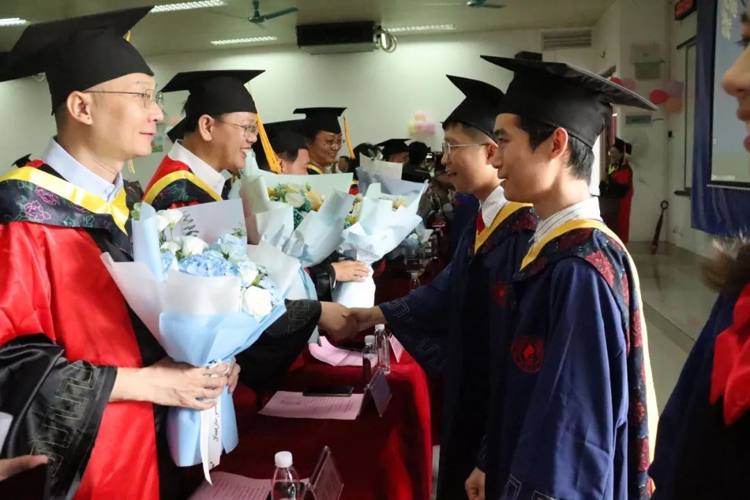 最后,学院主会场和分会场分别举行学位授予仪式。公司党委书记梁志坚、经理双丰为本科、硕士、博士毕业生进行拨穗,并授予学位证书。