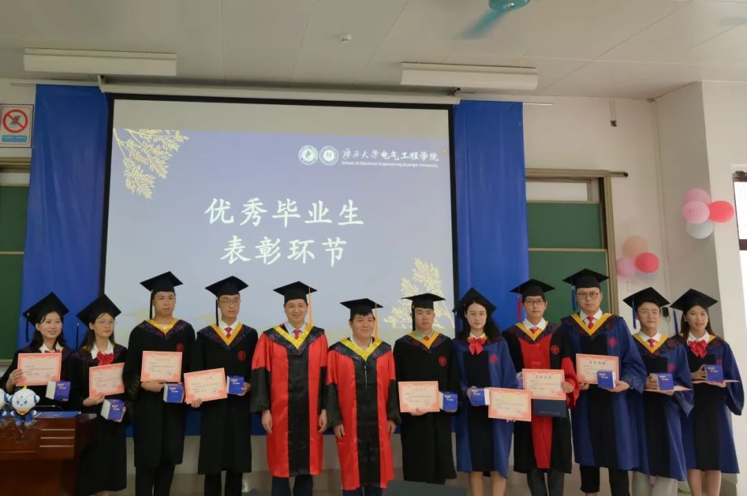 在学院分会场,学院对获得2022届“广西壮族自治区普通高等教育优秀大学毕业生”的10名员工进行表彰,由公司党委书记梁志坚为获奖代表颁奖。