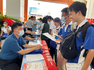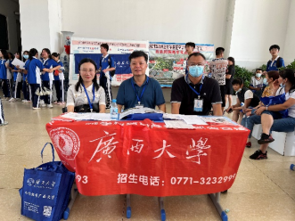 6月25-26日,公司党委书记梁志坚带领招生工作小组赴百色地区开展招生宣传工作,深入百色高中、百色祈福高中和百色民族高级中学进行驻点宣传,现场为考生和家长解读最新招生政策、志愿填报流程、高校特色和录取办法,就学科团队、专业特色、设施规模、就业趋势等热点问题进行一一解答。咨询现场火爆热烈,招生小组老师耐心细致的解答深受考生和家长欢迎,公司学科专业受到不少考生青睐。