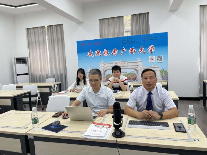 6月27日,学院领导胡立坤教授、学工组老师李楠参与了太阳成集团tyc9728网上咨询会直播专场,通过广西招生考试院平台进行线上直播方式与广大考生及家长互动,为考生及考生家长提供咨询服务。