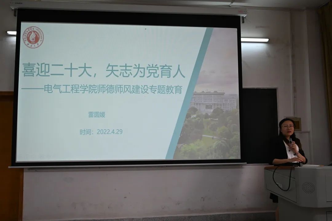 公司党委副书记、纪委书记雷圆媛以“喜迎二十大,矢志为党育人”为主题,开展“师德师风”建设专题教育。雷圆媛副书记结合习近平总书记关于“师德师风”的重要论述以及《9728太阳成集团教师失德失范行为处理办法》,详细解读公司师德负面清单,以生动案例给全体教职工上了一次形象生动的“师德师风”教育课,引导广大教师时刻自重、自省、自警、自励,努力打造具有政治素质硬、业务能力精、育人水平高的高素质教师队伍。