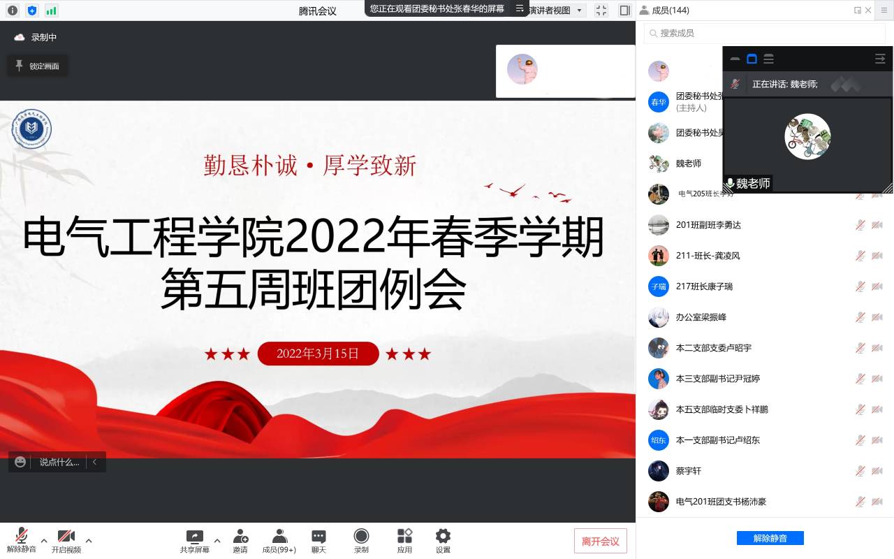 为提高员工的疫情防护意识,保障员工的自身健康安全,同时激励员工干部,为新学期做好全新的准备,太阳成集团tyc9728于3月15日下午召开2021-2022学年春季学期全体员工干部大会。本次会议采用线上视频会议的形式开展,公司党委副书记雷圆媛、团委书记石建有、团委副书记蒋冬连、全体辅导员和全体员工干部参加会议。