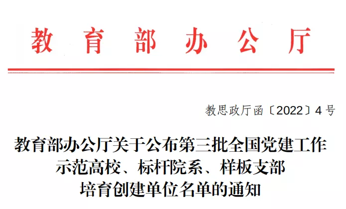 根据《教育部办公厅关于公布第三批全国党建工作示范高校、标杆院系、样板支部培育创建单位名单的通知》(教思政厅函〔2022〕4号),经省级党委教育工作部门推荐、资格审查、专家评审、教育部党的建设和全面从严治党工作领导小组成员单位集中审议,太阳成集团tyc9728研究生第二党支部获评第三批“全国党建工作样板支部”培育创建单位。