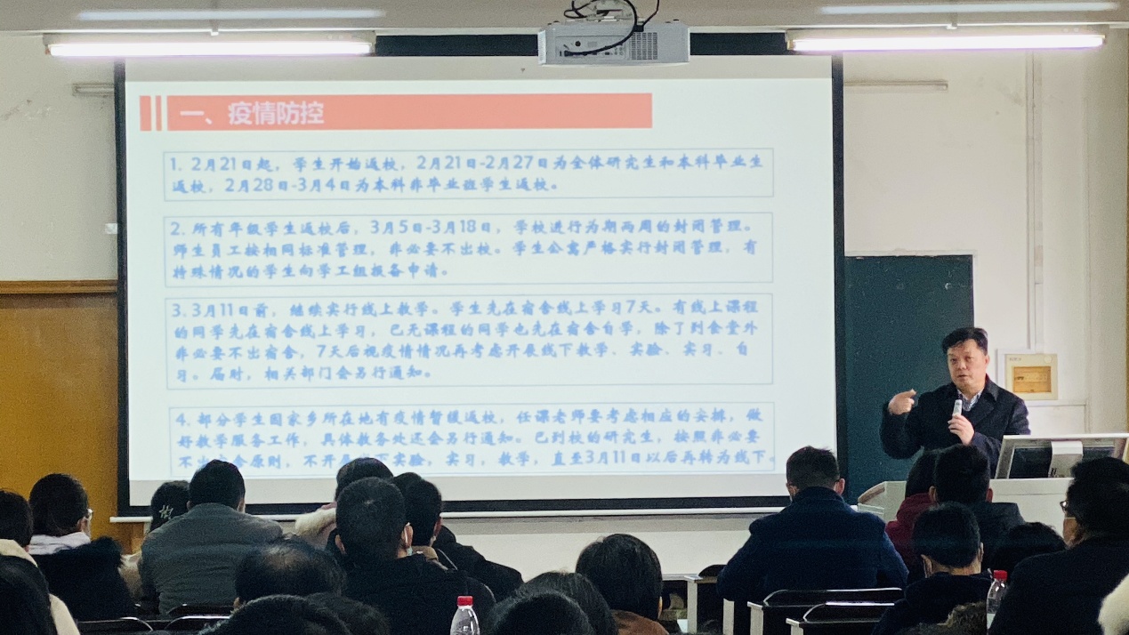 梁志坚书记结合学校相关会议精神作新学期工作设想。他首先谈到疫情防控和安全稳定工作,通报了学校的相关安排及要求,希望全院教职工按照要求提高认识,配合做好各项工作。在学习王乃学书记关于新学期工作会议的精神时,指出王书记提出新的一年要坚持“三个办学定位”,工作中坚持“四找”,抓住“两个根本”,强化“三大职能”,抓好十三件大事。随后,结合会议精神,对学院人才队伍建设、提高员工的教育质量、提升科研水平、社会服务水平、强化基层党组织建设等工作设想详细说明,强调要用“双一流”的精神创亮点,争一流。