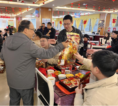 席间,学院领导与教师代表深入交流,围绕学院发展谈成绩,问计策,说规划。年夜饭上,学院领导详细了解留校员工的生活情况,并分发了学院专属的“旺旺大礼包”,对他们表示衷心感谢和美好祝福。丰盛美味的佳肴、温暖人心的祝福、催人奋进的激励让师生感受到别样温暖。