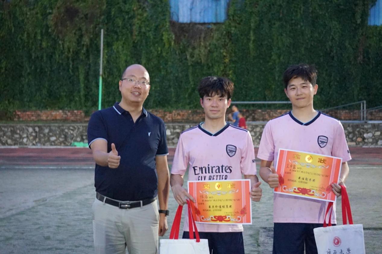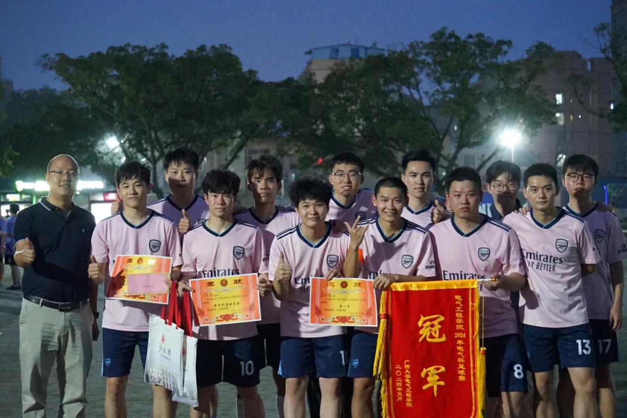 5月17日下午,公司“电气杯”足球赛总决赛和季军争夺赛同时在东校园体育场开赛,公司党委书记梁志坚、党委副书记李道洋,辅导员李楠、李浩铭、何惠榕、冯敏到现场观赛并为参赛队伍加油助威。 春夏交际,场上稍有炎热,跑动起来凉风阵阵,正是太阳成集团tyc9728运动健儿们驰骋绿茵场的大好时机。本次“电气杯”足球比赛包括教职工队在内,总共12支队伍,113人参赛。东校园体育场上,星研联队与电气221和224班联队上演冠军争夺战,电自216和电创211班联队与最优化队展开季军角逐战。 “运筹帷幄,决胜千里”是双方队员开赛前的博弈,根据各自的情况和对对手的了解,各队都制定了详尽的战略部署。在队员们严密配合、进攻和防守中,比赛精彩片段频出,令观众目不暇接。 双方比分始终咬紧,赛况紧张激烈。最终随着哨声响起,比赛结果尘埃落定,而运动员们的矫健身影,给观众留下了深刻印象,成为一种激励人奋进拼搏的精神动力。 狭路相逢勇者胜,本次强强对决中,凭借高超的水平和沉着冷静的定力,星研联队荣获冠军,电气221和224班联队惜败荣获亚军,电自216和电创211班联队荣获季军! 冠军 李道洋副书记为冠军星研联队颁奖 亚军 李楠老师为亚军电气221和224班联队颁奖 季军 冯敏老师为季军电自216和电创211班联队、第四名最优化队颁奖 李道洋副书记为最佳射手吴卓霖(右一) 最具价值球员徐浩(中间)颁奖 夏天来临的五月,正是青春跃动的时节,少年的每一次冲刺,每一脚射门,就像一株新发的萌芽破土而出、一次对人生高峰的勇于攀登。不论结果如何,这群奋进的电气学子,定会在今后的人生长河中,如这个夏天一般一次次勇往直前,踢出属于自己的盛夏。 合影留念